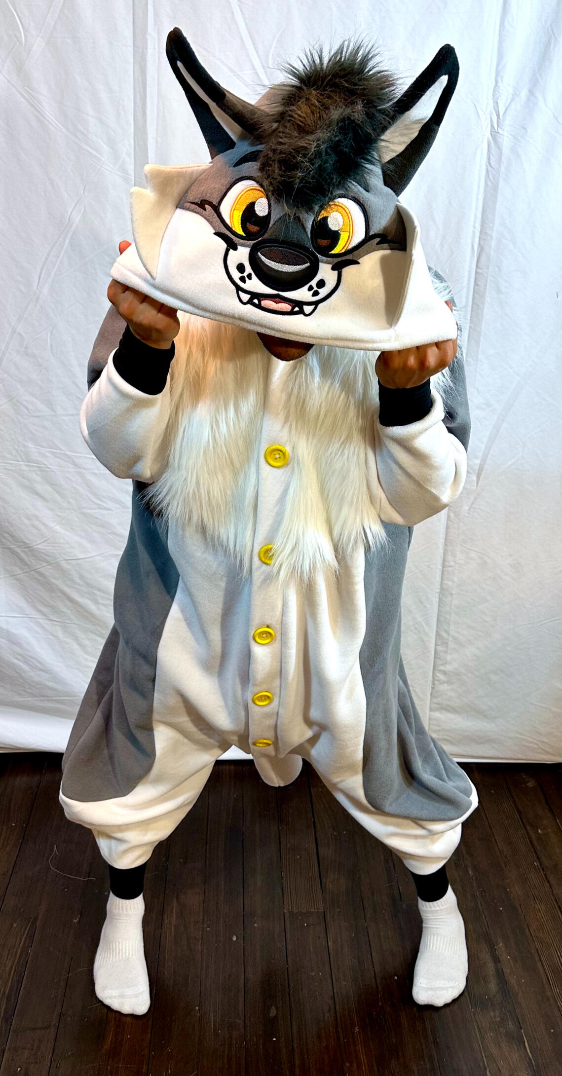 Most pieces can be put in a washing machine and cleaned on a cold water cycle with regular detergent. Stuffed pieces, such as tails or feet, take a long time to dry and are easier to spot clean unless they need a thorough wash. Pieces can be dried either in a no heat tumble setting on a dryer, or by hanging over a fan.Heads should be spot cleaned with soap or detergent and water on a washcloth. The inside can be sprayed with rubbing alcohol to disinfect it. I recommend wearing an extra balaclava or face mask under the suit head to reduce the amount of sweat absorbed by the head.Q: How do I store my costume?