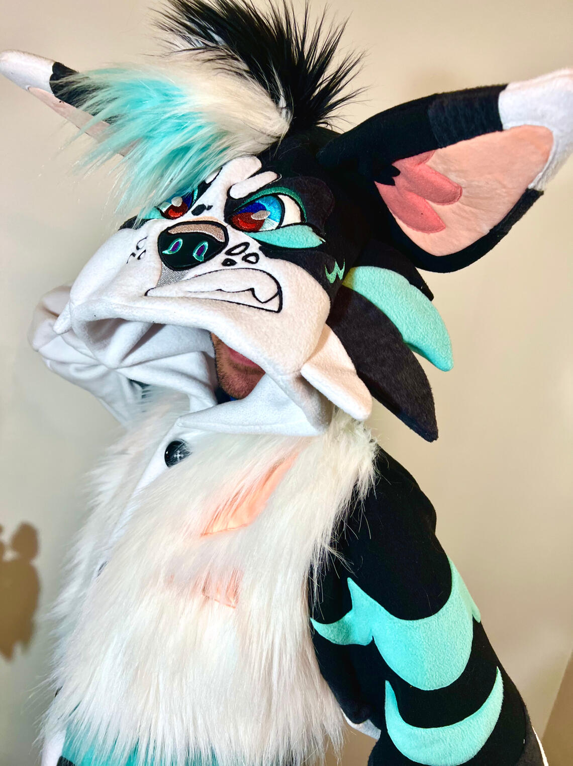My fursuits are made entirely with fake fur. Heads are constructed out of high density upholstery foam, and most padding is made with spandex and polyfill. Other materials I use in my work include vinyl, fleece, minky fabric, various paints, and resin. I do not use any real animal parts in my work.Q: How durable are your costumes?