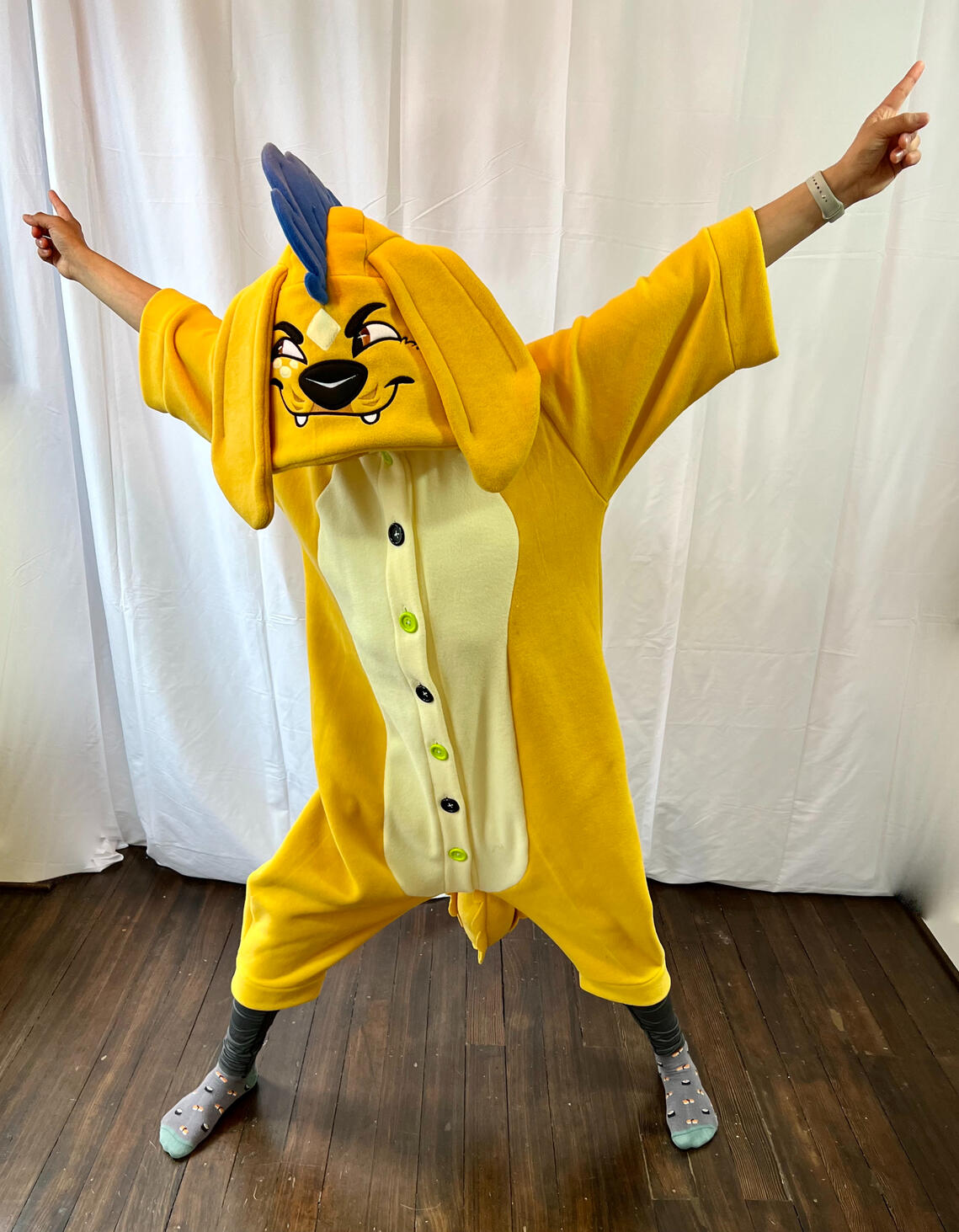 A kigurumi is a onesie style outfit that is both a cute costume and comfy pajamas!My kigurumi are made with cozy anti-pill fleece and have the option of custom embroidered faces on their oversized hoods for extra personality! The bodies are loose fitting and have a "dropped" or lowered crotch seam for easy lounging and a super relaxed fit. They fasten in the front with adorable oversized buttons for an especially cartoony look. They even have pockets!Most kigurumi will include many pieces of custom embroidery to suit your character, and are completely unique to your design! They are custom made to your measurements and design specifications. They are a cozy wearable art piece created just for you!